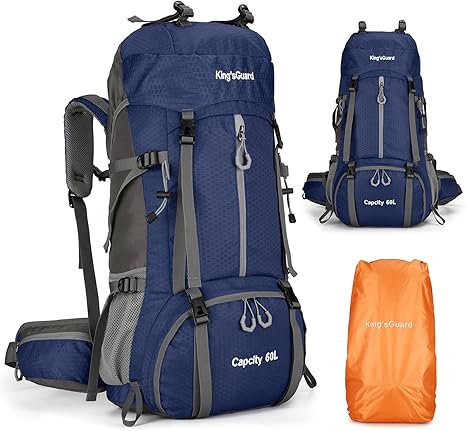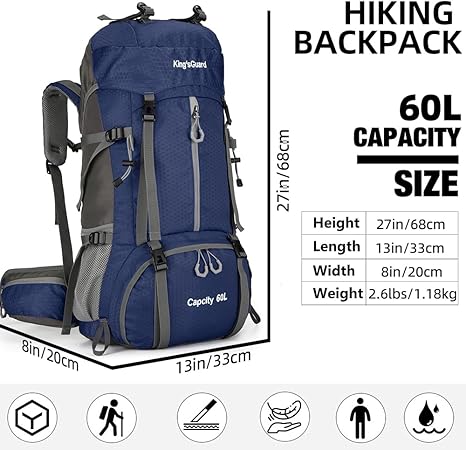 60L Hiking Backpack: The dimensions of hiking daypack is 26.78*13*7.9 inch, generous main compartments designed by drawstring large opening, bottom separate shoe warehouse, 60L room suitable for 2 to 3 days of hiking or camping.
